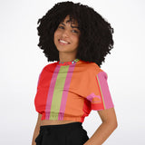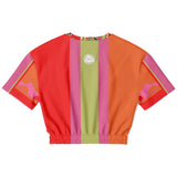 Chili Pepper Colorblock Camo Trio Short Sleeve Cropped Eco-Poly Sweater