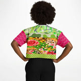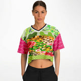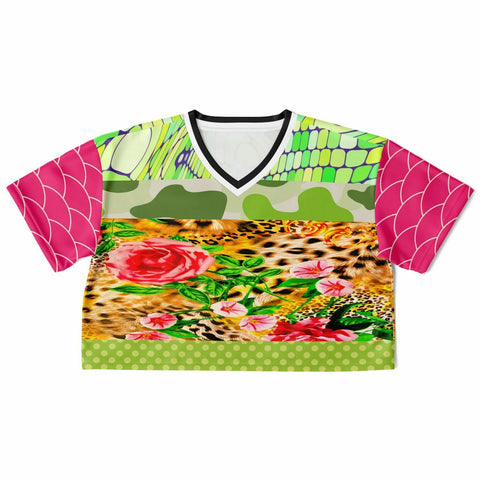 Show up in style with this cropped football jersey. This top is a must-have for any modern fashionista. The chic design is casual yet trendy, making it a perfect addition to your wardrobe essentials.