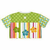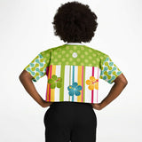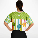 Green Anjou Pear Striped Floral Crop Jersey