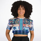 Dolores Park Paisley Plaid Short Sleeve Cropped Eco-Poly Sweater