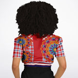 Hippy-Dippy Plaid Short Sleeve Cropped Eco-Poly Sweater