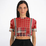 Jersey Salsa Plaid Patchwork Short Sleeve Cropped Eco-Poly Sweater