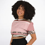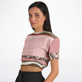 Pink Geo Zebra Short Sleeve Cropped Eco-Poly Sweater