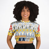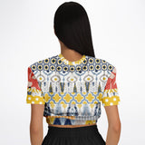Tallulah Bankhead Elevate Patchwork Short Sleeve Cropped Eco-Poly Sweater