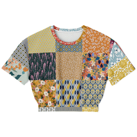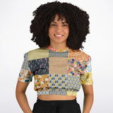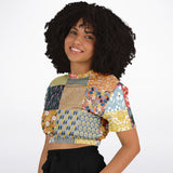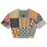 Tallulah Bankhead Patchwork Quilt Short Sleeve Cropped Eco-Poly Sweater