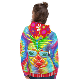 Meet the 'Pineapple Express 'SYLKKE hoody. Enjoy the high life all day long while sporting this glorious top. This comfy unisex pullover has a silky soft cottony exterior decorated by vibrant shades of red, blue, green and yellow. You will appreciate the double-lined hood with contrasting patterns, soft brushed fleece interior and front kangaroo pocket to keep your hands warm and keep your phone within easy reach. It's perfect for wrapping yourself into on a chilly evening. And best yet, it's exclusive to That Hoody Shop.