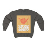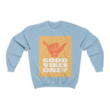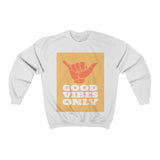 The Good Vibes Only unisex sweatshirt is another sweet design from That Hoody Shop and is exclusive to our store. You're sure to have good vibrations while sporting this top.Available in 8 color options. The dense fabric is an uber-soft french terry texture on the outside and cozy on the inside with its brushed fleece interior will keep you comfortable and warm. The relaxed fit makes it just the thing for wrapping yourself into on a chilly evening. Wanna wear it like a dress? Be sure to buy the XL for a micro mini or the 2XL for a simple mini. It's the perfect boxy mini-dress.