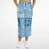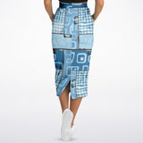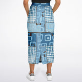 Blue Geo Patchwork Eco-Poly Long Pocket Skirt