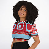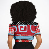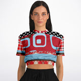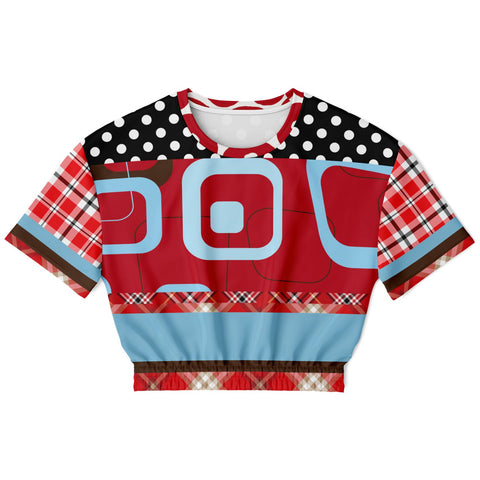 Red Pacific Palisades Plaid Short Sleeve Cropped Eco-Poly Sweater