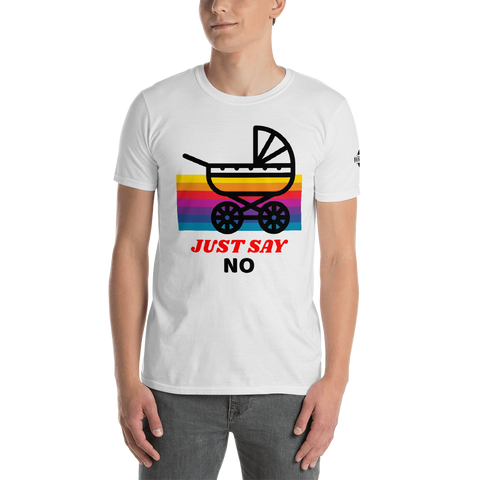 <p>Let this be a funny reminder for you. Repeat after me, 'no glove, no love!' Or a baby carriage will be the least of your worries. The 'Just Say No' tee is sure to bring laughter to all those who set eyes upon it and will quickly become one of your favorites not just due to its design but it's made of a thicker, heavier cotton, that's also soft and comfy.